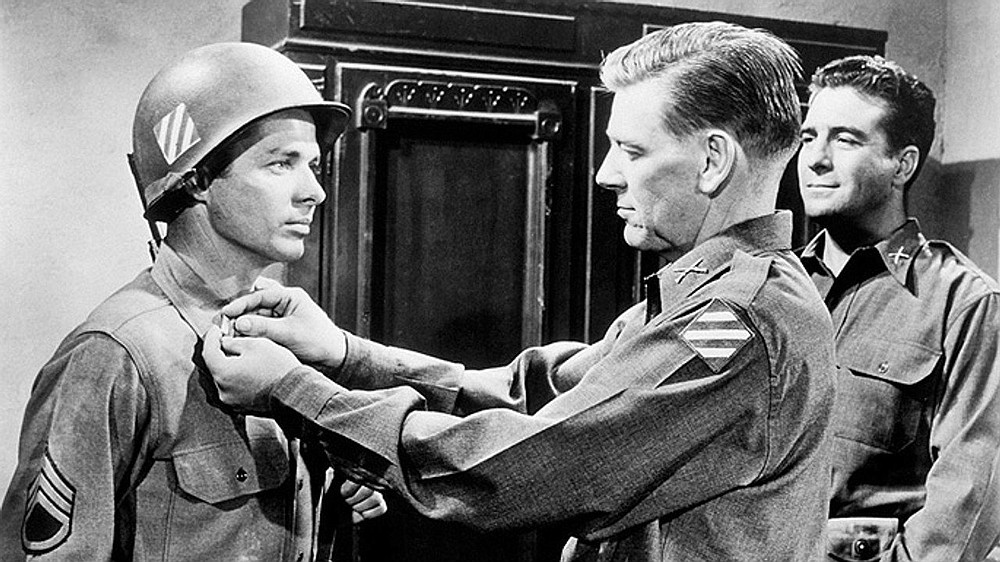 Audie Murphy (1924-1971) foi o soldado americano mais condecorado da II Guerra Mundial, recebendo a Legião de Honra Francesa e a Medalha de Honra do Congresso Americano. Devido aos seus feitos heroicos na guerra, onde chegou a ser ferido no quadril (impossibilitando-lhe seguir a carreira militar), ele ganhou passaporte para Hollywood, onde notabilizou-se estrelando faroestes modestos como um dos astros de maior prestígio do gênero, entre os quais Serras Sangrentas (Sierra, 1950), A Morte Tem Seu Preço (Gunsmoke, 1953), e Tambores da Morte (Drums Across The River, 1954).