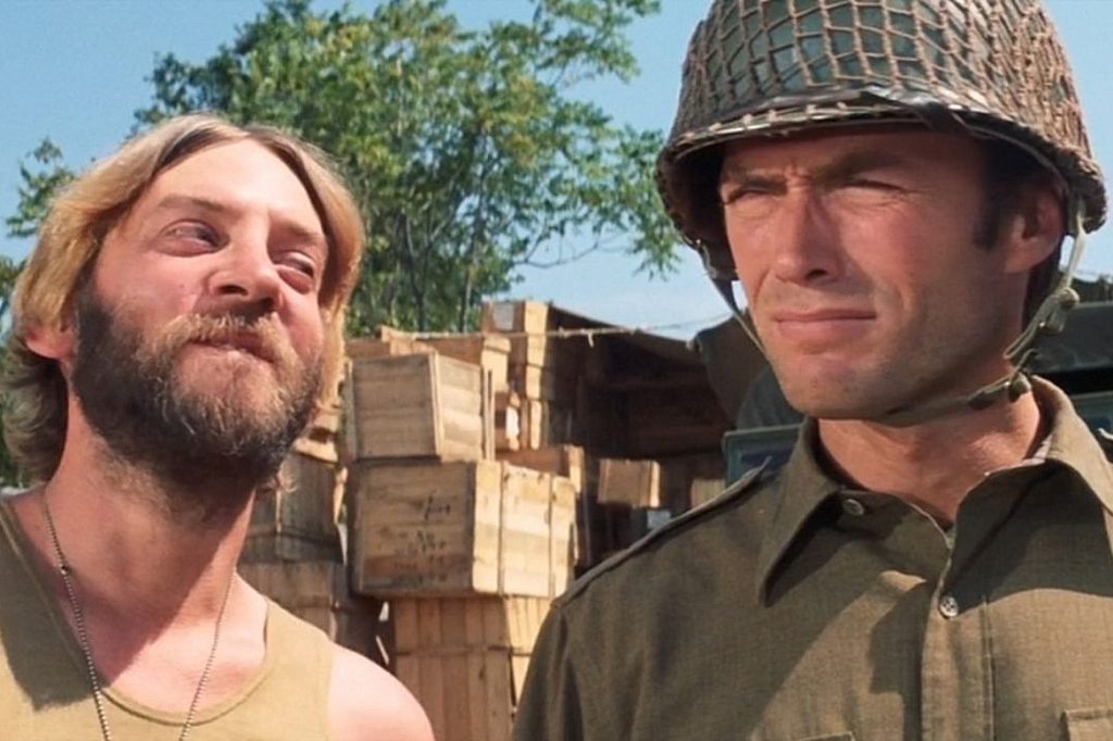 #3. OS GUERREIROS PILANTRAS (1970). Comédia de Guerra, com Sutherland interpretando Oddball, um soldado hippie em plena II Guerra Mundial, que junto com os amigos Kelly (Clint Eastwood) e Big Joe (Telly Savalas) organiza o roubo de 14 mil barras de ouro que os alemães esconderam em um banco na França. Disponível na Apple TV