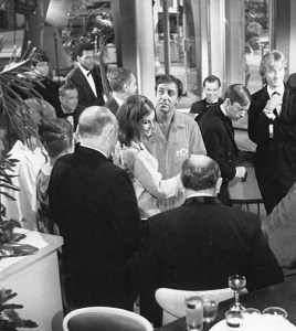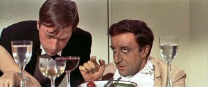 em inconsciente cumplicidade com o garçom (Steve Franken, 1932-2012) que bebe todos os drinques recusados.