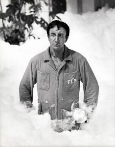 trabalha para o estúdio de Clutterbuck, Divot (Gavin MacLeod, 1931-2021). Divot está dando