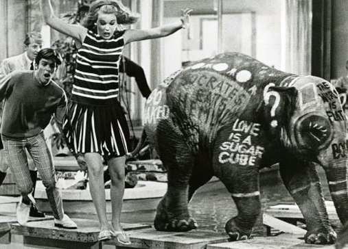 A entrada do elefantinho na mansão, que provoca ainda mais confusão, e a cítara, não poderiam faltar em UM CONVIDADO BEM TRAPALHÃO (1968).