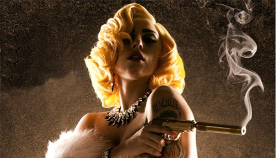 #2. Sin City: A Dama Fatal (2014). Gaga interpreta a garçonete Bertha em um dos segmentos do filme episódico baseado na obra em quadrinhos de Frank Miller. Foi seu segundo papel novamente sob a direção de Robert Rodriguez. Um ano depois a cantora impressionou com sua potência vocal na cerimônia do Oscar 2015 quando interpretou as canções de A Noviça Rebelde (1965) em uma homenagem a Julie Andrews.