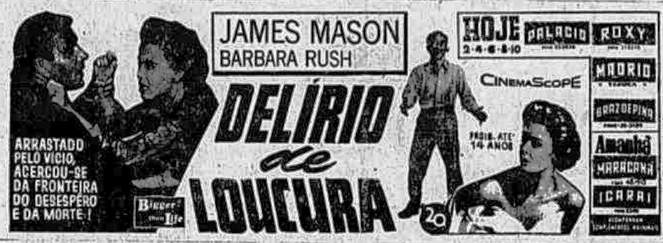 | Divulgação do filme pelos jornais cariocas. O Cine Roxy ainda continua de pé em Copacabana, e o Palácio hoje é o Teatro Riachuelo, centro do Rio de Janeiro. |