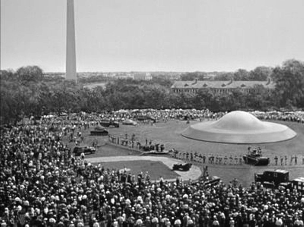 A Nave de Klaatu aterrissa em campo aberto em Washignton, sede do governo norte americano.