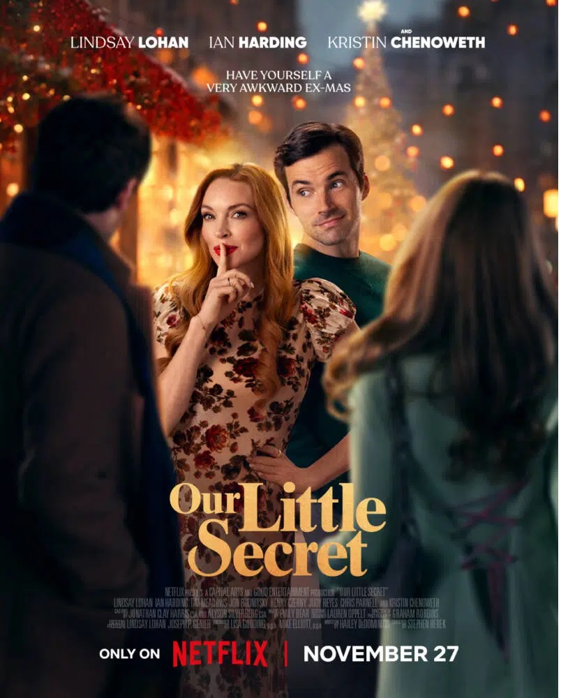 Terceiro e último filme do contrato da estrela Lindsay Lohan com a Netflix já está disponível na Netflix. O filme reúne a atriz com Tim Meadows, com quem contracenou em Meninas Malvadas (2004). Na história, Avery (Lindsay Lohan) e Logan (Ian Harding) são ex-namorados que se odeiam e não se falam há 10 anos. Quando descobrem que seus atuais parceiros são irmãos, eles são forçados a passar o Natal juntos e a esconder que já foram namorados.