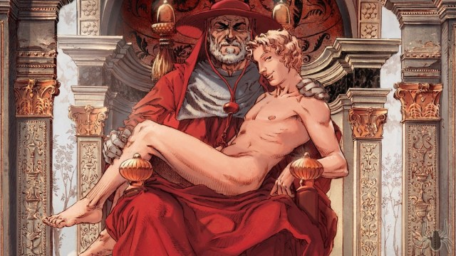A trama mostra os eventos que transcorreram após a morte do papa Alexandre VI (Rodrigo Bórgia) e as manobras do cardeal Giulianno Della Rovere, valendo-se de meios pouco ortodoxos, lascívia e promiscuidade durante o meteórico papado de PIO III (Francesco Todeschini Piccolomini) para adquirir recursos e meios que lhe garantissem resultado favorável para ser empossado como a maior autoridade da Igreja Católica no Mundo, sendo nomeado PAPA JÚLIO II em novembro de 1503. Mais do que a ambição pelo poder, Júlio II possuía um ultranacionalismo exacerbado, e desejava ver a Itália – então composta por várias Cidades-Estados autônomas – como uma única nação com o clero sob seu comando integrando o governo central. Em razão disso liderou inúmeras batalhas e travou diversas alianças espúrias com nações estrangeiras inimigas, o que lhe garantiu o epíteto de PAPA TERRÍVEL. Objetivando também manter-se no poder e no comando da Igreja Católica, continuou valendo-se de planos e práticas hediondas para manter seu papado. A história continua com roteiros de ALEJANDRO JODOROWSKY que, numa trama fluída e objetiva, se valeu do contexto, personagens e fatos históricos para tecer uma teia de intrigas e batalhas numa narrativa envolvente, mas, certamente, com um número maior de extrapolações do que na história anterior, sobretudo no que se refere ao destino final de JÚLIO II, as circunstâncias de sua morte e consequente fim de seu papado. Entretanto, vale salientar, isso não afeta de forma alguma o prazer da leitura. Infelizmente a baixa mais sentida da equipe artística ficou por conta da ausência de Milo Manara, que não retornou para esta sequência, mas o artista THEO CANESCHI (creditado apenas como THEO), acompanhado por uma competente equipe de colorização, não desaponta nas ilustrações, conseguindo compor boas sequências com seu traço requintado e detalhes hachurados. Não chega a ser aquela história indispensável, mas vale a recomendação pela leitura, pois, não obstante o bom trabalho da CONRAD nesta edição encadernada (com poucos extras que se restringem às biografias dos autores), as obras de ALEJANDRO JODOROWSKY são sempre dignas de atenção.😉