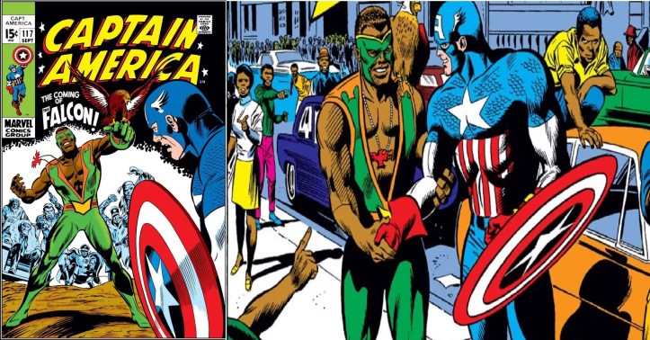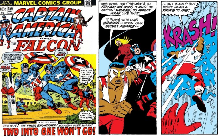 O personagem se torna tão relevante e essencial nas histórias do Capitão América que algum tempo depois o título original do personagem foi renomeado para CAPTAIN AMERICA AND THE FALCON na edição #134. Stan Lee se despede do personagem na edição #141 de 1971. Na edição #153 se inicia a fase escrita por STEVE ENGLEHART, acompanhado de SAL BUSCEMA nos desenhos, numa caprichada sequência de histórias que culminarão com um grande e empolgante embate entre o Capitão América e o Capitão América da década de 1950. Lembram da tentativa frustrada de reviver a revista do Capitão em 1953? Quando o Capitão foi redescoberto pelos Vingadores, as histórias dessa dessa época foram automaticamente desconsideradas naquele momento, no entanto o roteirista STEVE ENGLEHART, numa decisão muito criativa, decidiu integrá-las à mitologia do herói como sendo uma iniciativa do governo em criar um NOVO Capitão América depois da suposta morte de Steve Rogers no final da Segunda Grande Guerra, e essa “duplicata” ressurgiu anos depois com a convicção de ser o autêntico herói. E, tendo o verdadeiro Capitão América ficado congelado entre o final da Segunda Guerra e os “dias atuais”, Englehart aproveitou a deixa para construir uma interessante narrativa que resultou num combate entre os “Capitães” retratado na edição #156, que foi publicada no Brasil em CAPITÃO AMÉRICA EM CORES (CAPITÃO Z)#24, da EBAL, CAPITÃO AMÉRICA #1 da Bloch Editores (1975) e CAPITÃO AMÉRICA #26 da Editora Abril (1981).