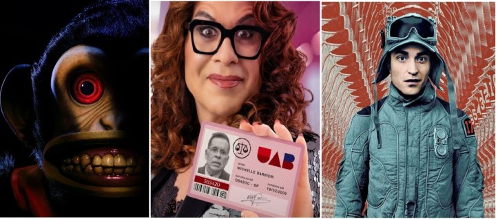 O MACACO (The Monkey) EUA 2024. Dir: Osgood Perkins. Com Theo James, Tatiana Maslany, Elijah Wood, Christian Convery. Terror. Adaptado de um conto de Stephen King, o filme tem os nomes de James Wan (Invocação do Mal) na produção e Osgood Perkins (Longlegs : Vínculo Mortal) na direção. Dois irmãos gêmeos (James) encontram, inesperadamente, um macaco de brinquedo que pertenceu ao pai. Quando coisas estranhas começam a acontecer ao redor deles, os irmãos decidem se desfazer do macaco. Anos depois, eventos terríveis voltam a acontecer e eles precisarão encontrar o boneco e destruí-lo de vez. O filme reúne alguns rostos conhecidos como Tatiana Maslany (Mulher-Hulk), Elijah Wood (O Senhor dos Anéis) e Christian Convery (Sweet Tooth).