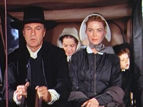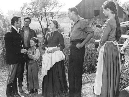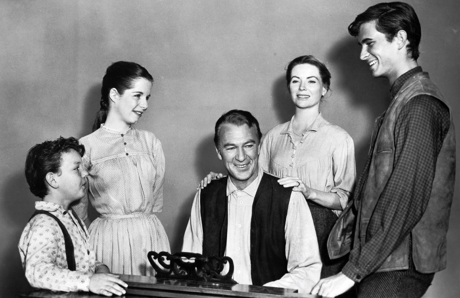 | A Família Birdwell: O patriarca Jess (Gary Cooper), a esposa Eliza (Dorothy McGuire), e os filhos Josh (Anthony Perkins), Mattie (Phyllis Love) e o caçula, o pequeno Jess (Richard Eyer) |