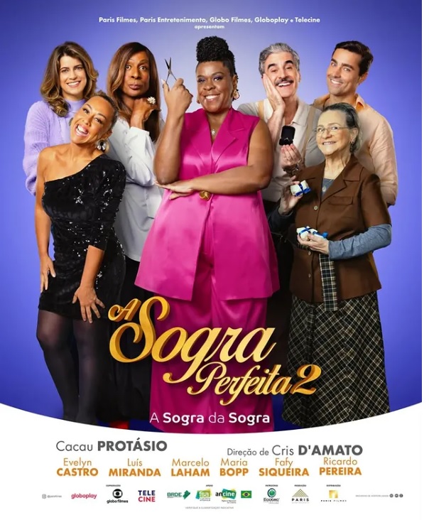 A Paris Filmes divulgou o poster da comédia A Sogra Perfeita 2, estrelado pela sempre excelente Cacau Protássio. Com roteiro original de Flávia Guimarães e Bia Crespo, o filme acompanha Neide (Cacau) a cabelereira bem-sucedida curtindo sua liberdade depois que os dois filhos saíram de casa. Sua paz acaba no dia em que ela é pedida em casamento por Oliveira (Marcelo Laham), seu namorado português. Neide não aceita, mas, quando se dá conta, toda a vizinhança do fictício bairro de Vila Cleide já está sabendo do casório. Para complicar, Dona Oliveira (Fafy Siqueira), sua quase sogra, chega de Portugal para a suposta festa. Agora, sem poder contar com a ajuda da sua melhor amiga, Sheila (Evelyn Castro), com quem se desentendeu durante um disputadíssimo concurso de penteados, Neide terá que lidar com a confusão que resultou de tudo isso. Continuação do filme de 2020, que invertia a situação colocando Neide como a sogra enrolada em uma série de situações para o casamento do filho. A Sogra Perfeita 2 chega aos cinemas em 12 de junho.