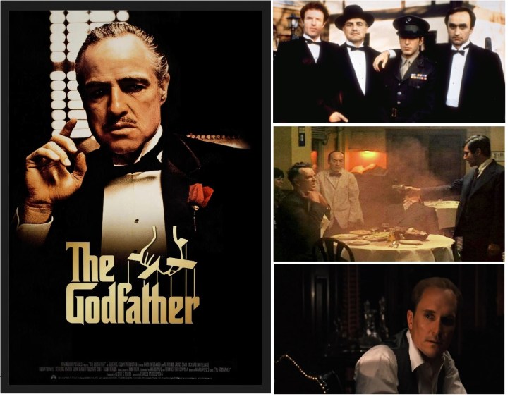 O romance O Poderoso Chefão de Mario Puzo foi publicado em 1969 e se tornou um best-seller instantâneo. Coppola e Puzzo trabalharam juntos para adaptar o romance para o cinema, criando uma narrativa que é ao mesmo tempo fiel ao original e inovadora em sua abordagem. A adaptação foi um sucesso, e o filme se tornou uma obra-prima do cinema. O filme começa em 1945, com a festa de casamento de Connie Corleone (Talia Shire), filha de Don Vito Corleone (Marlon Brando), o poderoso chefão da Máfia italiana em Nova York. Durante a festa, Don Vito recebe pedidos de favores de vários personagens, incluindo o cantor Johnny Fontane (Al Martino), que pede ajuda para obter um papel em um filme. Enquanto isso, o filho mais velho de Don Vito, Michael Corleone (Al Pacino), um veterano da Guerra da Coreia, se encontra com Kay Adams (Diane Keaton), uma mulher não italiana que ele conheceu na faculdade. Quando Don Vito é atacado por um rival, a família Corleone é forçada a se defender. Michael, que inicialmente se recusou a se envolver nos negócios da família, é puxado para dentro do mundo do crime, principalmente depois do brutal assassinato de seu irmão Sonny (James Caan). À medida que a história avança, Michael se torna cada vez mais envolvido nos negócios da família e eventualmente assume o papel de Don Vito como o novo chefão, com a ajuda do advogado Tom Hagen (Robert Duvall), leal servido da família Corleone.