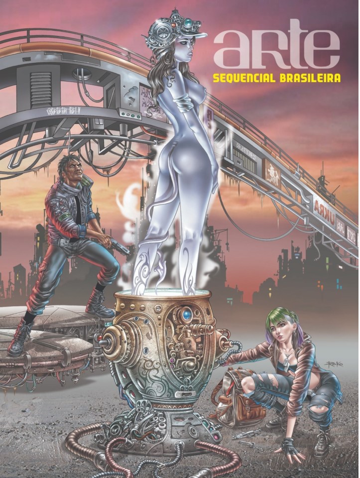 Adilson : Conta para a gente como o seu livro, A Arte Sequencial Brasileira, vai tocar nos pioneiros do meio e, é claro, nos artistas que até hoje estão produzindo essa arte maravilhosa, que são os quadrinhos. Dario: Em 1996, você comentou no início que eu editei a Heavy Metal. Antes disso, a Heavy Metal era uma revista americana traduzida aqui para o Brasil, e antes disso, participei de um álbum de autores brasileiros. Na época, era a Loja Comics que estava patrocinando. Eles queriam fazer um álbum para comemorar os 10 anos da loja. Eu conheci o proprietário da loja na época. Enquanto desenvolvia a ideia, esse proprietário da loja, que era o Carlos, conhecia o pessoal que publicava a Heavy Metal em português no Brasil e sugeriu tentar licenciar o nome. Precisamos de um álbum de autores brasileiros com o selo Heavy Metal. Então, ficou Brasilian Heavy Metal, Brazilian com “S” mesmo. Reunimos também dezenas de autores na época. Minha ideia agora é retomar esse conceito de reunir vários autores para fazer um álbum também. Na minha experiência como editor, tem muito isso, de reunir diversos autores. A Pau Brasil era uma coletânea. Mesmo a Graphic Talent, cada número era um autor diferente. No meu histórico de editor, tem isso, de juntar uma galera, um pessoal bom e mostrar mesmo a diversidade do quadrinho brasileiro. A proposta do álbum é justamente essa. Tem alguns autores mais antigos, outros mais novos, alguns até publicando pela primeira vez. A ideia é mostrar a diversidade do talento brasileiro para os quadrinhos.