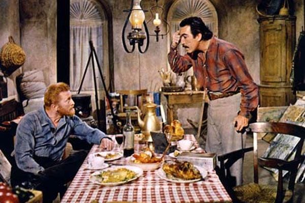 Esse foi o momento da virada para o ator que conquistou o Oscar de melhor ator coadjuvante pelo papel que veio a impulsionar sua carreira, e tornando-o o primeiro ator de origem mexicana a ganhar a cobiçada estatueta de ouro da Academia. Repetiu o feito cinco anos depois quando interpretou o pintor francês Gauguin no excelente Sede de Viver (Lust for Life), dirigido por Vincent Minelli, que conta a história de vida do pintor Vincent Van Gogh (Kirk Douglas). Aparecendo por pouco tempo em cena, Anthony Quinn conseguiu brilhar mesmo contracenando com um visceral Kirk Douglas, em atuação igualmente impactante. Voltou a contracenar com Kirk Douglas como seu antagonista em filme apropriadamente batizado Duelo de Titãs (Last Train for Gun Hill) de 1959, faroeste em que Anthony Quinn interpreta um barão do gado que se recusa a entregar seu filho, que cometera um crime, ao homem da lei (Douglas) que já foi um dia seu melhor amigo. Ao longo da década de 50 diversos convites surgiam e o versátil ator foi morar na Itália onde, na época, várias produções internacionais eram rodadas pois os incentivos fiscais barateavam os custos de produção. Nessa época teve a oportunidade de trabalhar com Federico Fellini em Estrada da Vida (La Strada) de 1954. Sua figura já havia alcançado prestígio mundial quando apareceu ao lado de nomes de peso como Peter O’Toole e Omar Shariff em Lawrence da Arábia (Lawrence of Arabia), de David Lean, e esteve junto de Gregory Peck e, David Niven em Os Canhões de Navarore (The Guns of Navarone). Entre esses, me encantei com sua performance em As Sandálias do Pescador (The Shoes of The Fisherman), adaptação da obra de Morris West sobre um papa de origem ucraniana eleito em meio a uma crise mundial. Anthony Quinn transmite equilíbrio e uma humanidade tão acima dos padrões normais que, mesmo se tratando de uma história de forte contextualização política, suas ações parecem compor uma fábula moderna. A sabedoria e humildade espelhada nas telas fazem um curioso contraponto com os traços rudes de seu rosto. Este é o meu filme favorito dentre os estrelados por Anthony Quinn, devo dizer.