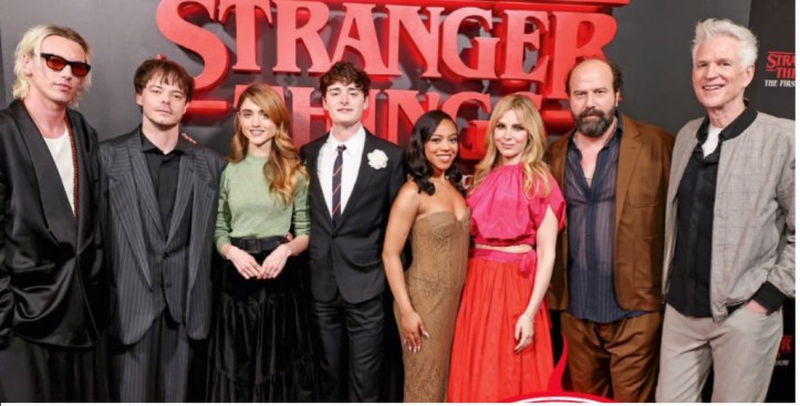 Aproxima-se a data do Tudum, evento anual da Netflix, que ocorrerá no sábado, 31 de maio, e será transmitido ao vivo em sua plataforma. Ele promete as primeiras imagens das próximas produções a chegarem à plataforma, incluindo, é claro, a quinta temporada de Stranger Things. Outra novidade será a série animada de Stranger Things, inspirado nos desenhos animados dos anos 80, que será chamado Stranger Things: Tales From ’85. A série está atualmente em andamento com Eric Robles como showrunner. “Sempre sonhamos com uma animação de Stranger Things nos moldes dos desenhos animados de sábado de manhã que crescemos amando, e ver esse sonho realizado foi absolutamente emocionante”, disseram os criadores de ST , os irmãos Duffer, que completaram em seguida dizendo “Não poderíamos estar mais impressionados com o que Eric Robles e sua equipe criaram – os roteiros e a arte são incríveis, e mal podemos esperar para compartilhar mais com vocês! A aventura do continua…” O elenco da série Jamie Campbell Bower (Vecna), Charlie Heaton (Jonathan), Natalia Dyer (Nancy), Noah Schnapp (Will), Priah Ferguson (Erica), Cara Buono (Karen), Brett Gelman (Murray) e Matthew Modine (Dr. Brenner) compareceram à noite de abertura de Stranger Things: The First Shadow, espetáculo da Broadway, ao lado de Matt e Ross Duffer e do produtor executivo Shawn Levy. O co-criador Ross Duffer explicou ao The Hollywood Reporter que “a peça começa a mostrar algumas coisas que serão grandes revelações na quinta temporada sem revelar tudo, porque queremos que a quinta temporada seja capaz de se manter por si só, obviamente. Portanto, foi uma corda bamba para andar, com certeza“. Ele também falou sobre a temporada final, dizendo: “É emocionante e é o nosso início mais rápido que já tivemos – nossos heróis estão em ação imediatamente , mas eu acho que, em última análise, espero que seja a nossa temporada mais emocional até agora. Esses episódios finais, o objetivo é que sejam muito fortes porque, de muitas maneiras, trata-se do fim dessa jornada que todos nós tivemos e também do fim da infância.” Enquanto promovia Thunderbolts*, o astro David Harbour (Hopper) disse: “Fizemos uma leitura do episódio final. Eu me lembro que íamos fazer uma grande publicidade , todo mundo ia estar lá, e eu pensei: ‘Podemos fazer só nós, só as pessoas que estiveram aqui – os Duffers e o elenco’. Fizemos isso apenas sentados em sofás e eu me lembro de o pequeno Noah Schnapp, Finn Wolfhard [Mike] e Millie [Bobby Brown, que interpreta Eleven/Jane] apenas chorando muito… havia algo tão especial nisso. Eu pensei: ‘Uau, este é realmente um grande acontecimento para grande parte do mundo e certamente para essas crianças’. Havia algo muito, muito comovente e bonito nisso.”