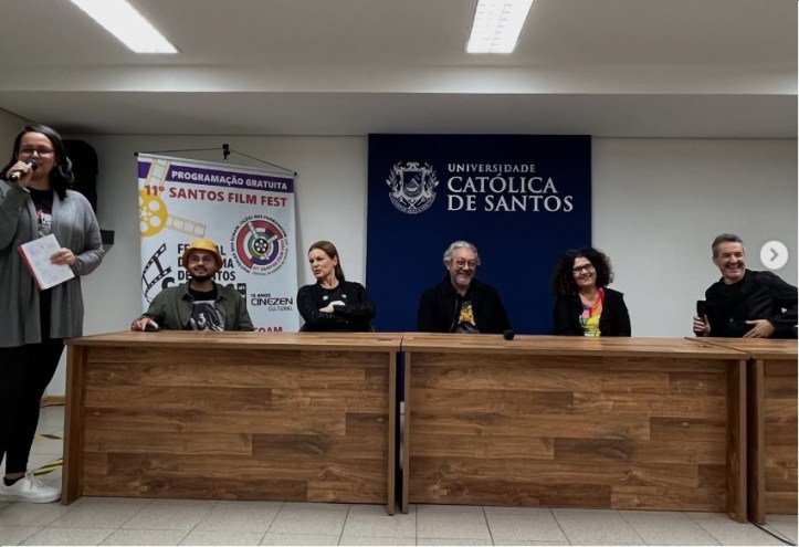 O 11º Santos Film Fest – Festival de Cinema de Santos marcou presença na Universidade católica de Santos na manhã de quarta (25/06) com Wanderley Camargo (Leyzinho), Márcia Okida, Alexandre Barbosa, Ondina Clais e Marcos Vinícius Santos em uma mesa redonda discutindo as tendências do cinema brasileiro ao longo desse ano até aqui e o que poderíamos analisar do que está por vir. À noite foi a vez de um bate-papo com a atriz Imara Reis e o diretor Guilherme de Almeida Prado sobre o filme Flor do Desejo (1984) exibido na UniSantos. Confira abaixo a programação desta quinta (26/06) e lembre-se que o 11º Santos Film Fest segue até 2 de julho em mais de 10 espaços de Santos na Baixada Santista.