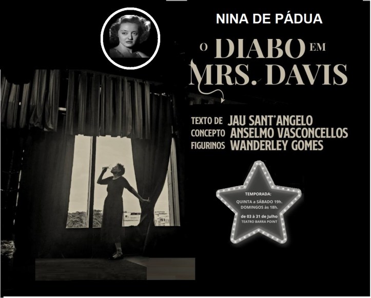 Bette Davis (1908/1989) foi uma das maiores atrizes do cinema Hollywoodiano, diva do teatro e da TV americana. Conhecida por interpretar personagens fortes, dona de olhos marcantes que viraram canção na voz de Kim Carnes e agora recriada na figura da excelente Nina de Pádua que a reimagina em um embate feroz com a glória, o tempo e os próprios demônios. Dirigida por Anselmo Vasconcellos, com texto incisivo de Jau Sant’Angelo, Nina estrela a peça O Diabo em Mrs. Davis em cartaz no Teatro Barra Point a partir de hoje (03/07) em temporada até 31 de julho. O texto primoroso revela a figura lendária de Bette Davis em sua fase mais íntima, quando a ribalta já não ofuscava mais as sombras e o espelho da memória exigia um acerto de contas. Não se trata de uma biografia convencional — mas de um mergulho teatral na alma fragmentada de uma mulher que jamais aceitou a invisibilidade. Consagrada nos palcos, na televisão e no cinema, a atriz Nina de Pádua brilha ao encarnar essa figura mítica, que por décadas ocupou lugar indelével no panteão das grandes estrelas do cinema., e no final de sua vida lutou contra a solidão e o esquecimento. A atuação de Nina é visceral e repleta de nuances, conduz o público por entre os labirintos de uma diva em crise, onde convivem sarcasmo, fragilidade, altivez e solidão. A direção de Anselmo Vasconcellos traz uma liberdade poética para trazer Bette encarnada por Nina em um recorte muito além do lado grotesco e glamoroso de uma diva, equilibrando o humor ácido e a tragédia iminente. O texto de Jau Sant’Angelo consegue nos fazer ouvir o espírito de Bette Davis e seu amor pela arte até o fim.
