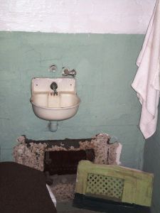 Foto da verdadeira cela onde Morris ficou preso, e as evidências de sua fuga espetacular.