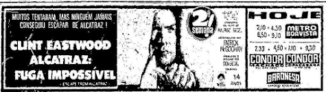 ALCATRAZ, FUGA IMPOSSÍVEL, em seus 112 minutos de projeção, estreou nas salas de cinema do Rio de Janeiro, em grande circuito, em setembro de 1979. A fotografia é de Bruce Surtess (1937-2012), e trilha sonora de Jerry “Meu ódio Será Sua Herança” Fielding (1922-1980).