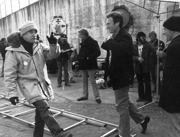 O diretor Don Siegel e Clint Eastwood nos bastidores das filmagens.