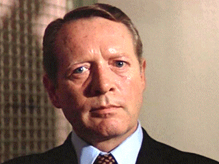 O cruel e desumano diretor do presídio, Warden, vivido por Patrick McGoohan.