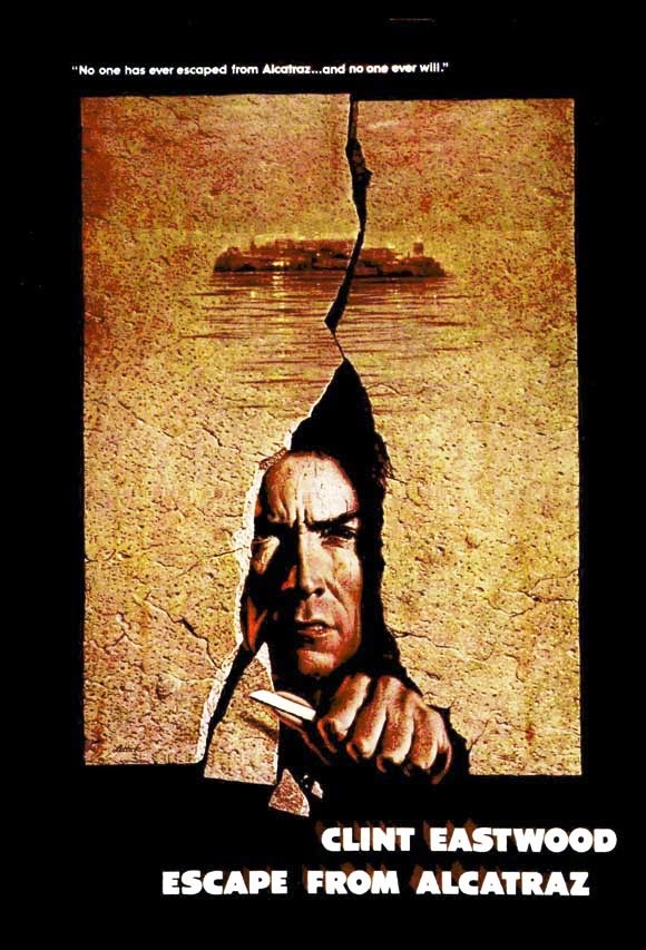 ALCATRAZ, FUGA IMPOSSÍVEL (Escape From Alcatraz, 1979) começa justamente com a chegada de Morris (Clint Eastwood), depois de sentenciado à prisão perpétua.  Realizado em 1979 e dirigido por Don Siegel (1912-1991), o filme também é baseado no livro de J. Campbell Bruce (1906-1996), escritor e pesquisador, que durante anos estudou sobre a Prisão de Alcatraz, que segundo ele, houve 14 tentativas de fuga durante os 20 anos de existência do presídio. Dos 39 prisioneiros que escaparam, 26 foram recapturados, sete baleados, três morreram afogados – e os três restantes (entre eles o próprio Morris), simplesmente desapareceram.  Não se sabe, até hoje, se foram tragados pelo mar, ou se realmente conseguiram recuperar a liberdade.