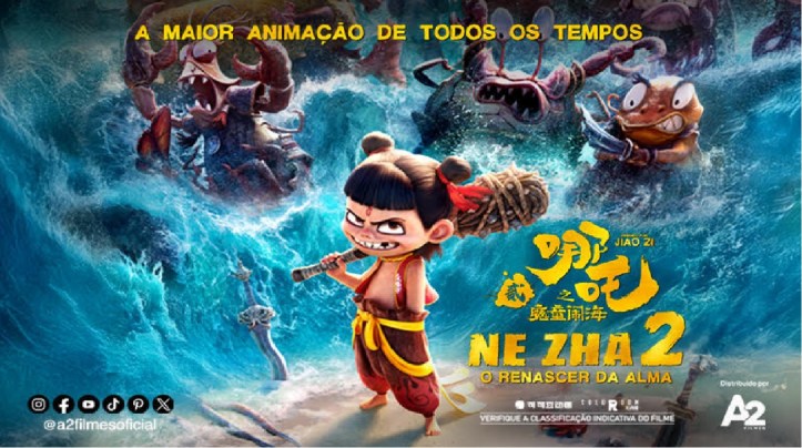 Com direção e roteiro de Yu Yang, que também dirigiu o longa-metragem original, o longa animado Ne Zha 2: O Renascer da Alma (Ne Zha 2) estreou no início do ano na China e se tornou a animação de maior bilheteria da história e a maior bilheteria de 2025, arrecadando até o momento mais de 2.2 bilhões de dólares. Na sequência do sucesso de 2019, acompanhamos os espíritos de Ne Zha e Ao Bing após a batalha final, quando seus corpos são destruídos. Reerguidos pela flor de lótus sete‑colorida, precisam unir forças para enfrentar dragões marinhos que ameaçam a Passagem de Chen Tang. Ao longo dessa jornada, descobrem sacrifício, amizade e seu verdadeiro destino como heróis da humanidade, com visuais grandiosos e cenas de ação emocionantes — tudo isso sem entregar spoilers. O filme chega exclusivamente nos cinemas brasileiros dia 25 de setembro com distribuição da A2 Filmes