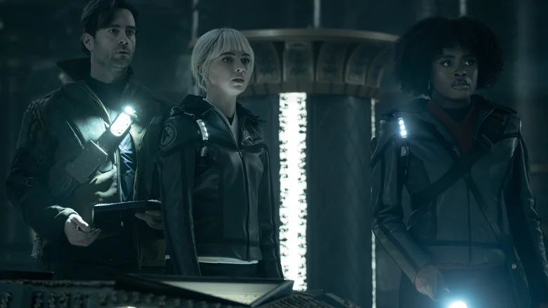 No episódio Through the Lens of Time da série Star Trek: Strange New Worlds, a enfermeira Chapel (Jess Bush) e seu novo namorado Roger Korby (Cillian O’Sullivan) descobrem um templo incrivelmente antigo escondido sob as rochas de um mundo distante. A tecnologia do templo ainda está ativa após incontáveis séculos profanos, e é necessária uma gota de sangue para entrar. Tudo é assustador e misterioso. No interior, a tripulação da Enterprise encontra uma série de esferas brilhantes que contêm… algo. Eles também descobrem que podem passar por passagens de pedra incomuns e entrar em diferentes planos de existência. Os seis tripulantes estão todos na mesma sala, mas não conseguem se ver porque estão fora de fase. É como uma casa mal-assombrada ou um manicômio abandonado. Quando o novo enfermeiro da nave, o alferes Gamble (Chris Myers), pega uma das esferas misteriosas, ela explode em sua mão. Os estilhaços de vidro e os raios de energias sobrenaturais imediatamente destroem seus olhos (!). Felizmente, sendo Star Trek, existem ferramentas médicas para fazer crescer novos olhos para ele. Mas o regenerador ocular parece não funcionar. Há algo mais no corpo do alferes Gamble. Ele começa a ver dentro da cabeça das pessoas e a pescar suas memórias mais infelizes. Ele zomba das pessoas por suas falhas. Algo claramente o possuiu. A tripulação acabará descobrindo que a esfera continha uma entidade maligna e incorpórea de origem desconhecida. A tripulação chega à conclusão, interpretando antigos glifos alienígenas, de que essas entidades foram deliberadamente aprisionadas no templo abaixo. Até mesmo Pelia (Carol Kane), que tem muitos milênios de idade, admite que olhar para esses alienígenas demoníacos lhe dá arrepios. Eles são assustadores e evocam as partes mais assustadoras de filmes como O Enigma do Horizonte (Event Horizon, 1988) e Prometheus (2010). Os alienígenas também são, talvez, os primeiros vilões totalmente originais nos anais de Star Trek: Strange New Worlds. Tais entidades não corpóreas são os primeiros vilões a nunca terem aparecido em nenhuma das outras séries da franquia, juntando-se aos Borgs, Cardassianos, Domínios e outras espécies. Outro detalhe para quem assistiu a série original é a presença de Roger Korby, vivido por Michael Strong no episódio De que são Feitas as Meninas ?(T1E17) em que a versão original de Christine Chapel (Majel Barret) o reencontra. Acompanhe Star Trek : Strange New Worlds na Paramount +, e a série original Star Trek na Netflix e na TV Channel Network.