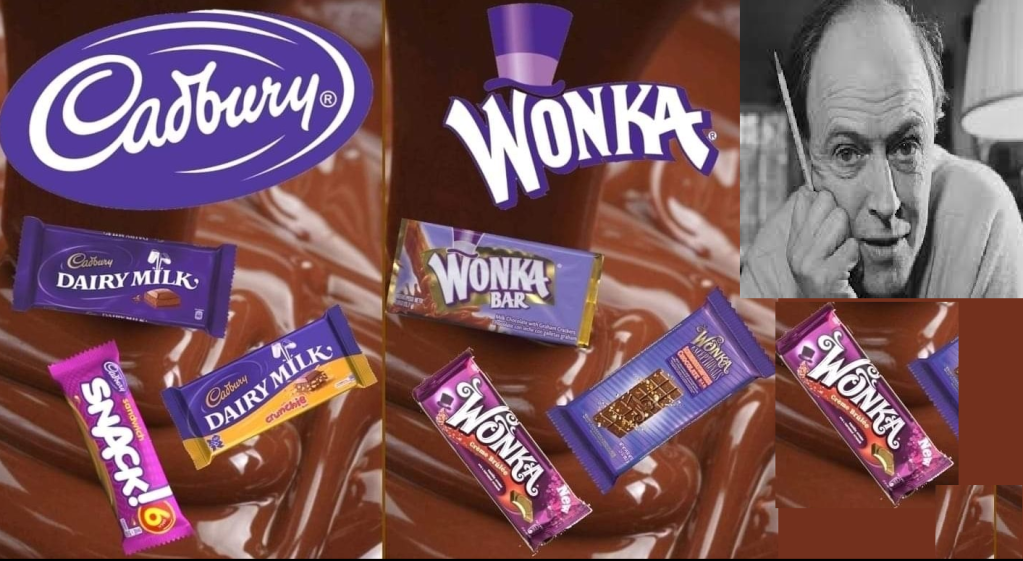 As coincidências entre a Cadbury e o livro de Dahl são várias: Em 14 de Agosto de 1990, a Cadbury inaugurou um parque temático em Bourneville, no Reino Unido, próximo à fábrica e que atrai milhares de visitantes. O local parece o cenário da história de Dahl com brinquedos e atrações que fazem o visitante se sentir um lugar mágico com rios, cascatas e montanhas. Além disso, o logotipo das barras de chocolate carregam a assinatura estilizada de William Cadbury, lembrando o nome Wonka retratado nas adaptações do livro para o cinema. A diversidade de produtos Wonka reflete na ficção a variedade da Cadbury com chocolate ao leite em barra (surgido em 1905), chocolate ao leite com flocos de arroz, com caramelo, biscoito wafer e uma infinidade de outros que faz da Cadbury a marca preferida dos ingleses e, mundialmente, uma das maiores concorrentes de nomes como a Nestlé, Hershey ou a Ferrero Rocher.