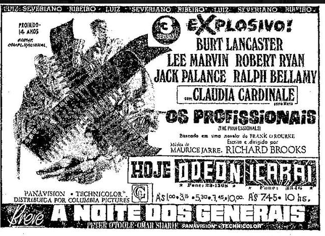 Divulgação de OS PROFISSIONAIS nas salas do Rio de Janeiro, pelos jornais. O CINE ODEON, ainda de pé na Cinelândia, foi uma das salas a abrigar o espetáculo.
