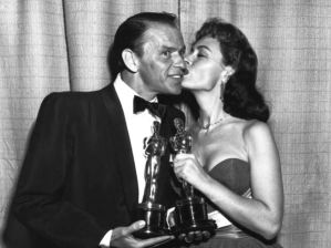 Os Campeões do Oscar de Atores Coadjuvantes: Frank Sinatra e Donna Reed. |