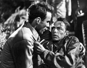 | Prewitt (Clift) acode Maggio (Frank Sinatra), prestes a morrer vítima da brutalidade de Judson. |