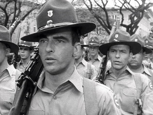 | Em marcha, os soldados Prewitt e Maggio. |