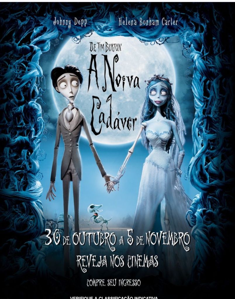 Ja no clima de Halloween, a Warner relanca nos cinemas a animação A Noiva Cadáver, sucesso de Tim Burton, de volta às telonas entre 30 de outubro e 5 de novembro, com apresentação de conteúdo extra especial, que revela mais sobre os bastidores e curiosidades do longa. Na historia, Victor Van Dort (Johnny Depp) é um jovem prestes a entrar em um casamento arranjado por interesses familiares. Ao ensaiar seus votos em uma floresta, ele acidentalmente se casa com a Noiva Cadáver (Helena Bonham Carter) e é levado para a Terra dos Mortos, vindo a descobrir um mundo muito mais acolhedor e animado do que poderia imaginar. O filme, originalmente lançado em 2005, estará em cartaz entre os dias 30 de outubro e 5 de novembro. Além disso, as sessões contarão com um conteúdo extra especial Os ingressos já estão à venda