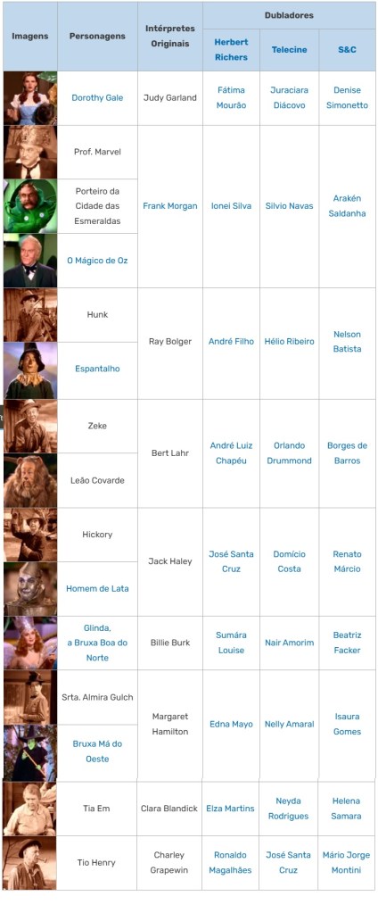 #6. O Mágico de Oz (1939) passou por três estúdios de dublagem: Primeiro pela Herbert Richers no início dos anos 80, quando foi exibido pela primeira vez na Tv brasileira, pela rede Globo, depois pela Telecine, e mais recentemente pela S&C paulista