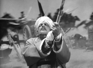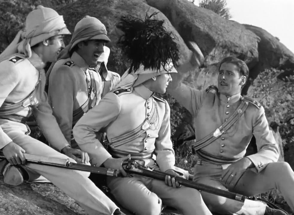 Errol Flynn é o Major Geoffrey Vickers, do 27º Regimento de Lanceiros da índia.