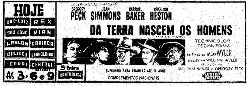 Divulgação do filme nos jornais cariocas, em exibição pelas salas do Rio de Janeiro.