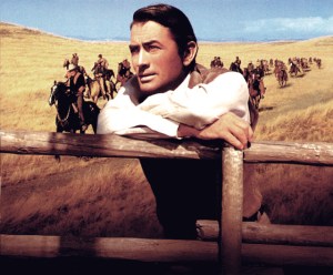 Gregory Peck como Jim McKay, o mocinho de DA TERRA NASCEM OS HOMENS (1958)