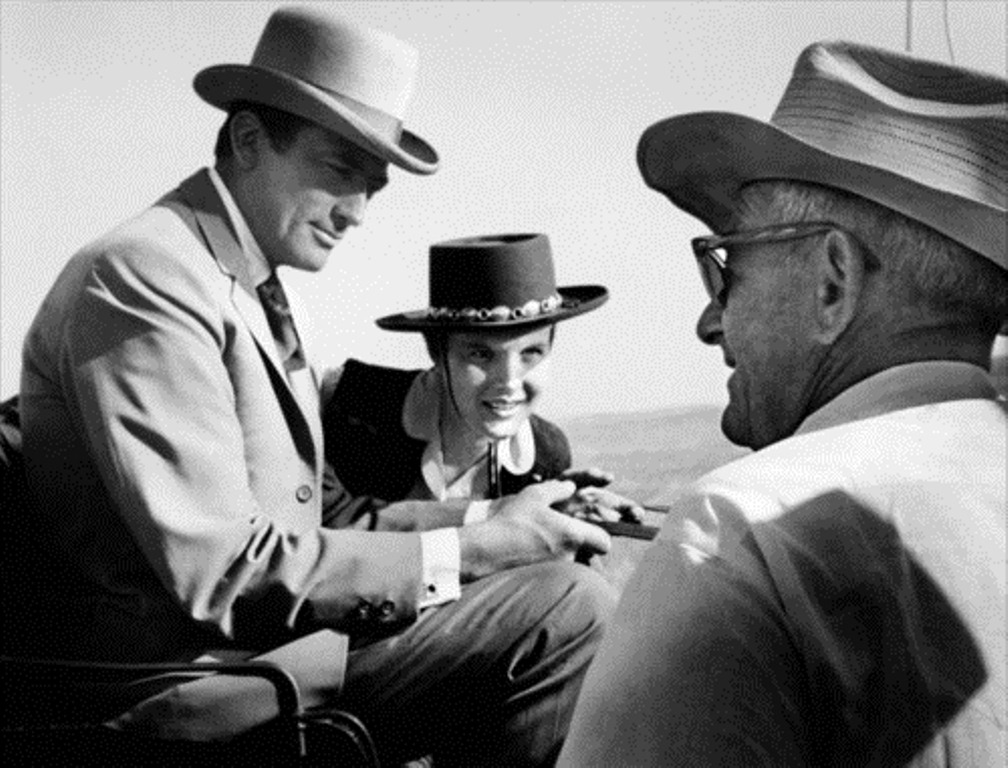 Gregory Peck e Carroll Baker recebendo instruções do diretor William Wyler.