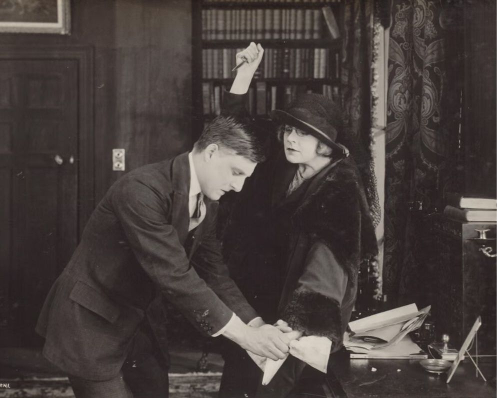 O British Film Institute restaurou três dos curtas-metragens de dois rolos de filmes mudos da série Sherlock Holmes da Stoll Pictures, do início da década de 1920. A estrela é o ator de teatro inglês Eille Norwood, cujo rosto bonito, perturbado e sensível aparece em close-up extremo no primeiro deles, A Scandal in Bohemia, de 1921. O Dr. Watson é interpretado em todos os filmes por Hubert Willis. Neste primeiro filme, nosso herói demonstra seus talentos como mestre do disfarce; Holmes é abordado pelo rei da Boêmia em seus aposentos na Baker Street, usando uma máscara (tão preocupado está ele em ser reconhecido), embora os poderes de dedução de Holmes (e, claro, seu próprio domínio superior desse tipo de impostura) lhe permitam desmascarar o rei imediatamente. Ele quer que Holmes roube uma fotografia incriminadora tirada dele com uma jovem mulher — uma “aventureira”, como ele curiosamente a descreve — que poderia ser embaraçosa. Trata-se da elegante atriz de teatro Irene Adler, interpretada por Joan Beverley, e Holmes consegue subir ao palco com Adler no meio da apresentação para executar um estratagema ousado. Mas, de forma surpreendente, Adler parece ser a única pessoa capaz de superar Holmes em inteligência. Em The Golden Pince-Nez, de 1922, um homem morto é encontrado com este objeto nas mãos, e Holmes intui brilhantemente exatamente que tipo de pessoa usaria esses óculos. E em O Problema Final, de 1923, Holmes confronta de forma climática o Napoleão do crime, o próprio Moriarty (Percy Standing), em um combate corpo a corpo colossal, transferido das Cataratas de Reichenbach, na obra original, para Cheddar Gorge. O que é surpreendente, especialmente no primeiro deles, é o uso de locações reais em Londres — a cidade que Conan Doyle teria reconhecido. Esses filmes foram rodados com o conhecimento e a aprovação de Conan Doyle, que era um grande fã da atuação de Norwood, e isso pode ter influenciado sua composição das histórias posteriores, da mesma forma que Sean Connery teria influenciado a concepção de Ian Fleming sobre James Bond nos últimos anos de vida de Fleming.