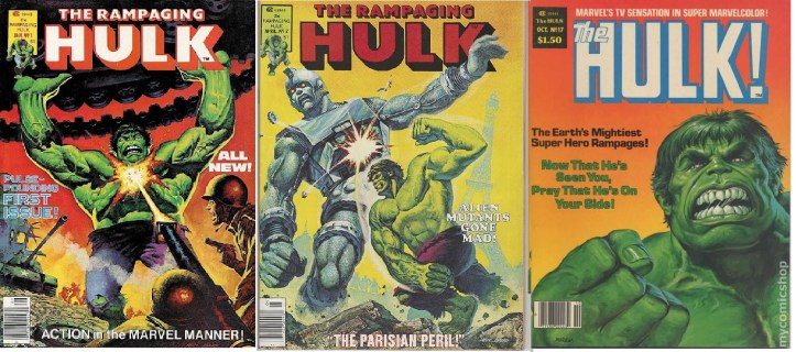 As histórias envolvendo Jarrella serviram para sacolejar o status quo do personagem, mostrando que o Hulk poderia vir a ser mais do que apenas um monstro incompreendido com mentalidade limitada; no entanto a equivocada (na opinião deste que vos fala, claro) decisão da morte da personagem encerrou uma possibilidade narrativa com considerável potencial que não chegou nem perto de todo seu potencial. Uma grande bola fora de LEN WEIN, que, na época (1976), era roteirista e editor do título do Hulk. E é forçoso registrar que diante de tantas ressurreições no mundo dos quadrinhos, essa foi uma morte que não foi desfeita com nenhuma explicação idiota ou forçada. Outro grande destaque da fase de Len Wein no comando do Gigante Verde foi a primeira aparição de WOLVERINE, em INCREDIBLE HULK #180, de 1974, publicada pela primeira vez no Brasil pela RGE no título O Incrível Hulk #22, de 1980 e, mais recentemente, na coleção FABULOSOS X-MEN – EDIÇÃO DEFINITIVA #4 da Panini Comics, de 2022. A edição THE INCREDIBLE HULK #194, de 1975 (no Brasil, O Incrível Hulk #29, de 1981, da RGE) tem sua importância por marcar a estreia do lendário e recentemente falecido SAL BUSCEMA como novo desenhista regular do título, ao lado de Len Wein (roteirista) e Joe Staton (arte-finalista), naquele que, salvo engano, foi seu trabalho mais longevo e marcante, e pelo qual foi sempre reconhecido pelos fãs mais antigos do Gigante Verde. Agora abriremos um parêntese para falar de THE RAMPAGING HULK, um título que praticamente nunca foi publicado no Brasil, exceto por duas edições da Editora Abril, sobre as quais falaremos adiante, e que retratou a face sombria e madura do Gigante Esmeralda nos anos 1970.