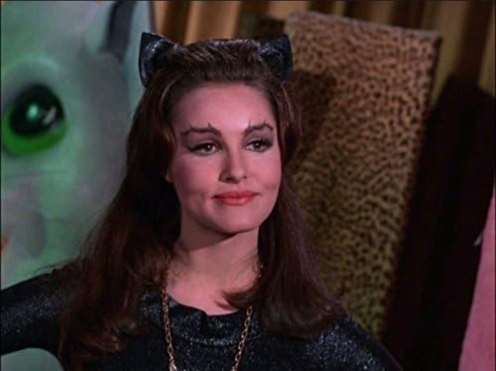Na galeria de vilões do Batman, uma personagem sempre se destacou ora como antagonista ora como aliada e até mesmo amante, a Mulher-Gato (Catwoman) surgiu pela primeira vez nas hqs nas páginas de Batman #1 (1940). Sua popularidade entelre os fãs foi quatro níveis estratosfericos muito em função de sua primeira versão live-action, retratada nas curvas da atriz Julie Newmar. Embora a personagem tenha sido interpretada também por Lee Merriwether (no filme Batman – O Homem Morcego de 1968) e por Eartha Kitt (na 3° temporada da série), não ha dúvida de que Julie Newmar se fixou na memória dos fãs desde sua primeira aparição no episódio duplo The Purr-fect Crime / Better Luck Next Time (Eps #19 e #20 da 1° temporada). Julie não sabia do Sucesso da serie na TV da época quando seu irmão, que estudava Harvard, falou a respeito e a estimulou a fazer o teste de cena. Julie seduziu a todos vivendo a vila felina que ao final prefere cair em uma fenda em uma caverna a ser salva por Batman. Claro que esse não seria o fim da sedutora ladra, que apareceu em um total de 6 episódios duplos como a principal adversária do Homem Morcego, além de uma rápida aparição no episódio no episódio #44 quando Ma Parker (Shelley Winters) toma o controle da prisão de Gotham City.