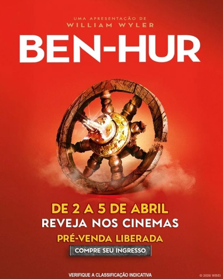 O Clássico Ben Hur (1959) dirigido por William Wyler retorna aos cinemas brasileiros em cópias remasterizadas em 4K de 2 a 5 de abril. Um dos maiores filmes de todos os tempos, o filme foi a terceira versão do romance de Lee Wallace (as duas primeiras foram em 1907 e 1925) contando a trajetória do príncipe judeu Judah Ben Hur (Charlton Heston) traído por seu irmão de criação, o romano Messala (Stephen Boyd) no alvorecer do cristianismo. Condenado a escravidão, separado de sua família e destituído de sua vida, Ben Hur empreende uma jornada do caos à vitória, movido pelo desejo de vingança. Contudo, o encontro com Jesus Cristo muda sua vida e lhe ensina o conceito do perdão. O elenco ainda inclui Martha Scott, Jack Hawkins, Stephen Boyd, Cathy O’Donnell e Hugh Griffith e Finlay Currie, dentre outros. O filme foi um campeão de Oscars com 11 estatuetas e uma das cenas mais impactantes da história da sétima arte, a corrida de quadrigas realizada nos estúdios de Cinecitta de Roma, impressionante e realista até hoje e superior a todas as tentativas de ser recriada como na terceira versão de Ben Hur feita em 2016. A pre venda já começou no site ingressos.com.