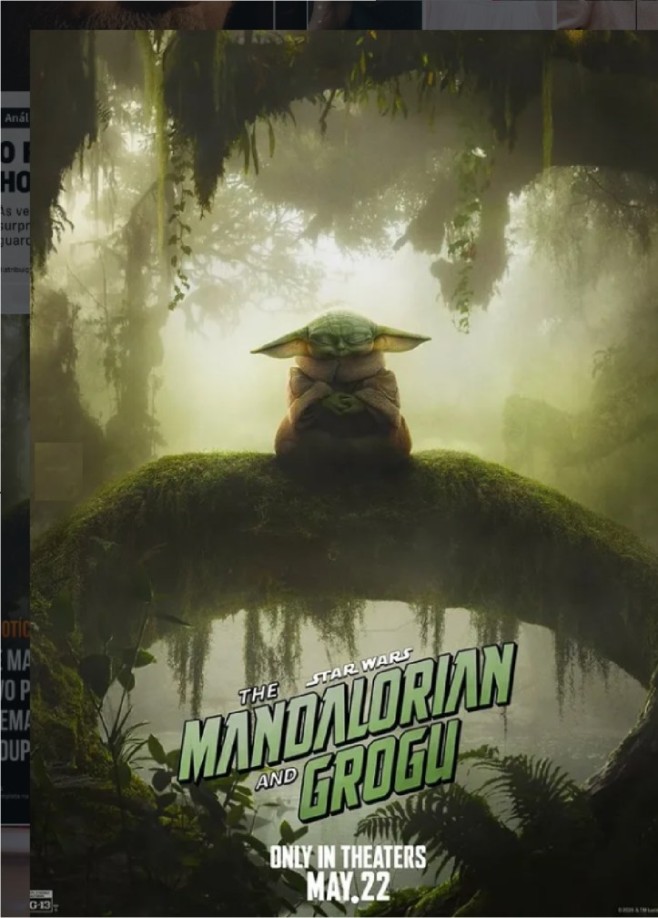 A Lucasfilm esteve presente na CinemaCon 2026 e divulgou o novo pôster oficial de O Mandaloriano e Grogu. A imagem traz o pequeno Grogu em um momento de meditação. Dirigido por Jon Favreau, o filme marca o retorno definitivo da franquia Star Wars aos cinemas desde o lançamento de Star Wars: A Ascenção Skywalker (2019). A história deve acompanhar Din Djarin (Pedro Pascal) e seu aprendiz em uma missão que coloca o futuro da Nova República em jogo, unindo elementos clássicos da saga com novos perigos espaciais. O elenco inclui os nomes de Sigourney Weaver, Jeremy Allen White, Steve Blum e o diretor Martin Scorcese como narrador. A estreia nos cinemas será em 22 de maio de 2026.