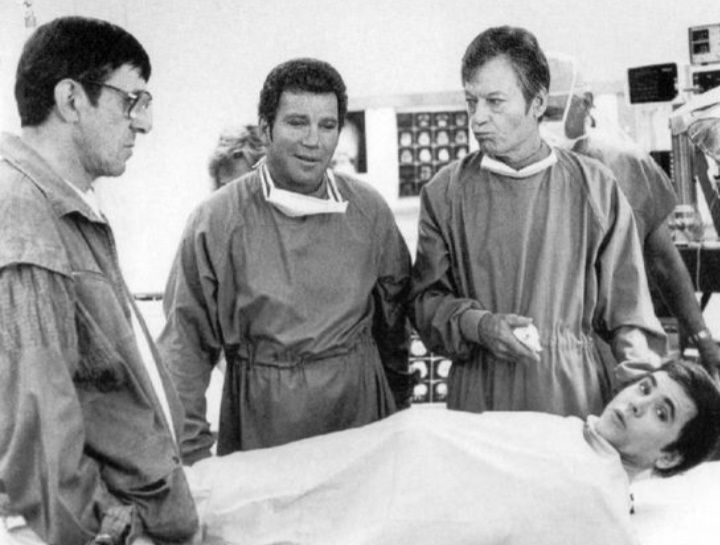 Imaginem Eddie Murphy interpretando um cientista desacreditado que acredita em disco voador e vem a testemunhar a aparição de uma nave de rapina Klingon na São Francisco de 1986. A visão acidental leva o personagem de Murphy a auxiliar o Capitão Kirk e sua tripulação a resgatar baleias jubartes que podem ajudar a terra no futuro. Se ninguém assistiu a esse filme é porque simplesmente ele não foi feito. Apesar de tudo parecer arranjado, Eddie Murphy veio a desistir do projeto e preferiu fazer “O Rapto do Menino Dourado (The Golden Child). Em seu lugar entrou a atriz Catherine Hicks como a biologa marinha Gilliam. Assim em 1986 a tripulação da Enterprise embarcou em uma viagem no tempo no quarto filme da franquia JORNADA NAS ESTRELAS IV – A VOLTA PARA A TERRA. A história de uma viagem no tempo já era ideia de Gene Roddenberry desde a época de realização do segundo filme, mas Gene queria levar a Enterprise de volta aos anos 60 em juma tentativa de evitar a morte de John Kennedy. Sua ideia era rejeitada pela Paramount que trouxe de volta Harve Bennet e Leonard Nimoy para o roteiro.